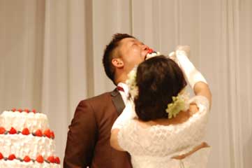 お色直し後、ケーキカット、ファーストバイト、友人のスピーチ・余興と続きます。