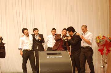新郎友人の歌のプレゼントでは、促されて本人もマイクを持って熱唱♪