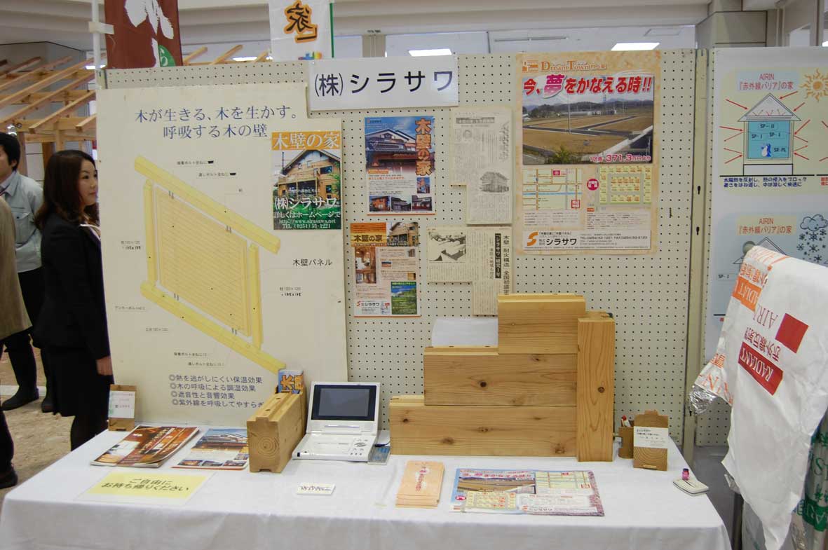 具体的には、模型を使った耐震補強等の展示や耐震診断補強提案パネル、また昨年同様に会員出展ブースや工作教室、「越後杉」利用を通じて地域の家づくりの提案を行っています。
